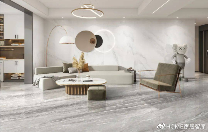 缝隙越大,瓷砖之间的割裂感就越强,空间整体美感就越差,这也是为什么瓷砖不如石材装饰效果好的原因所在。密缝铺贴的意义在于追求极致的空间体验,尤其是大理石瓷砖,已成为瓷砖领域占比最大的品类之一,随着生产技术的进步和相关企业的不断研发,大理石瓷砖在单片产品效果上可以无限还原天然石材的自然效果。但在整体空间上,受铺贴留缝的影响,其整体性、连贯性仍不如可以磨平的天然石材。如果大理石瓷砖铺贴中的伸缩缝尽可能缩小,以达到肉眼远观察觉不到缝的存在,则可以显示出整体性,自然细腻的纹理连贯起来,具有无限延伸的效果,不仅更接近天然石材浑然天成的美观,而且不易藏污易于清,省去了美缝和后期打理的麻烦,对家居健康也是一大提升。