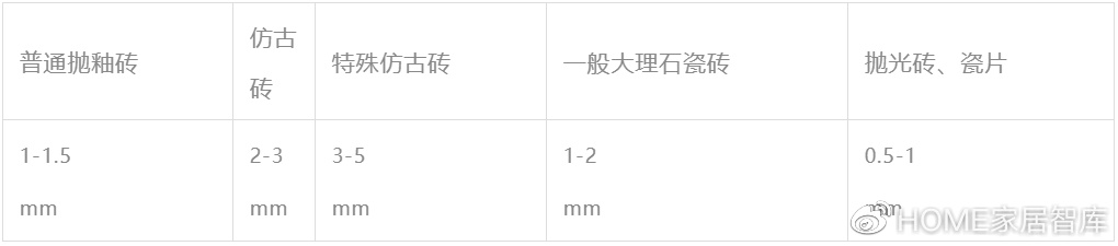 密缝铺贴源于80-90年代的小砖传统铺贴工艺,是相对传统的留缝铺贴而来。传统瓷砖铺贴工艺都要求留缝,鉴于各类瓷砖传热效果不同,因此传统工艺的留缝标准不一,大致如下: