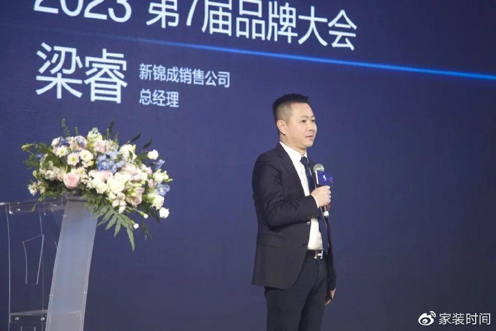 会议中,新锦成销售公司营销总经理欧书军以《追逐光,共赴远方》为主题,回首品牌画像生成,展望品牌发展蓝图,部署2023行动纲要。