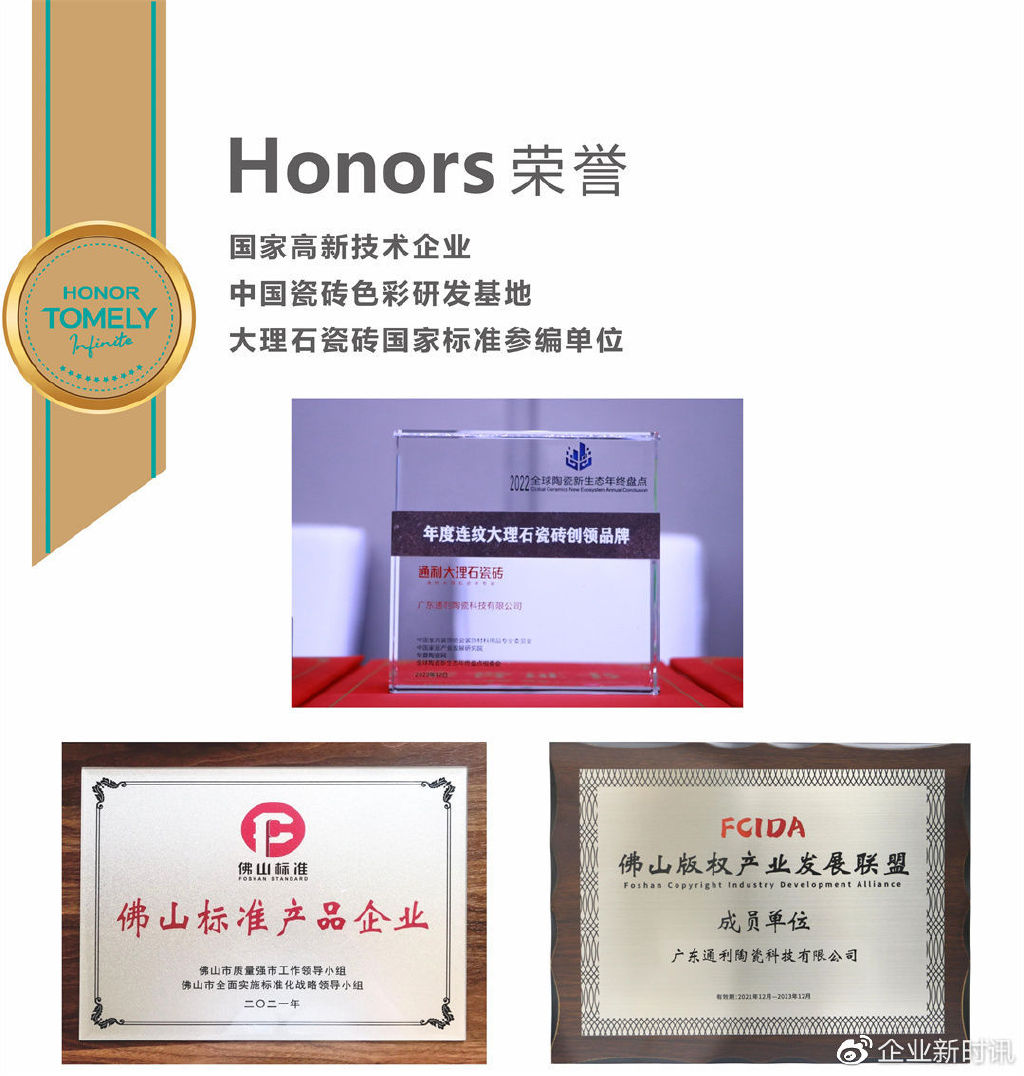 我拥有多项发明专利与实用新型专利,100多项产品外观版权认证,160多款优质高端大理石瓷砖产品;我的30+款「连纹大理石瓷砖×精工密铺」系统的整体空间解决方案,让更多客户轻松享有连纹大理石瓷砖的整体空间应用,带来绝佳的空间体验。