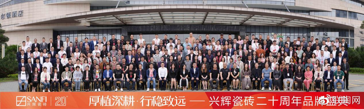2023年4月11日,兴辉瓷砖20周年品牌盛典在佛山希尔顿酒店隆重召开。新锦成集团董事长何成健先生、兴辉集团总经理张英女士、兴辉品牌销售中心总经理朱玺先生、兴辉产品管理部总监陈自丽女士、兴辉运营管理部经理杨旭丽女士、兴辉财经管理部经理陈小兵先生、超级品牌工作室主理人刘德志先生,及现场300多位来自全国各地的兴辉瓷砖经销商家人齐聚一堂,为兴辉瓷砖二十周年庆生,同时共商兴辉瓷砖未来发展大计,见证轻奢4.0时代的启幕。