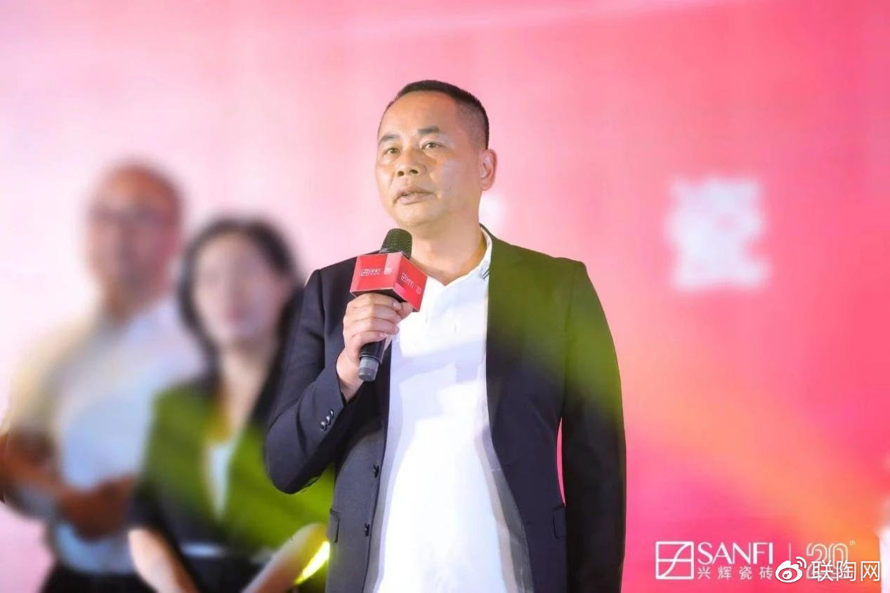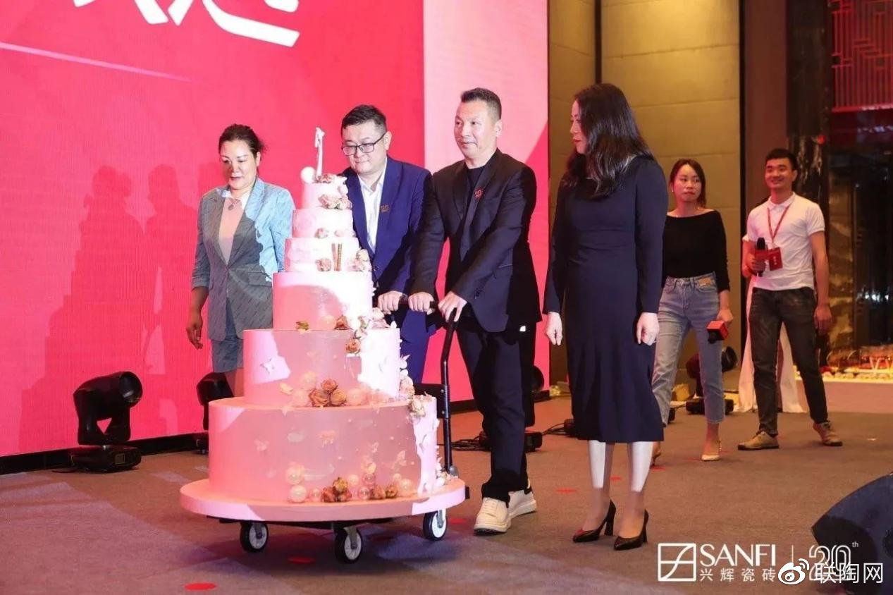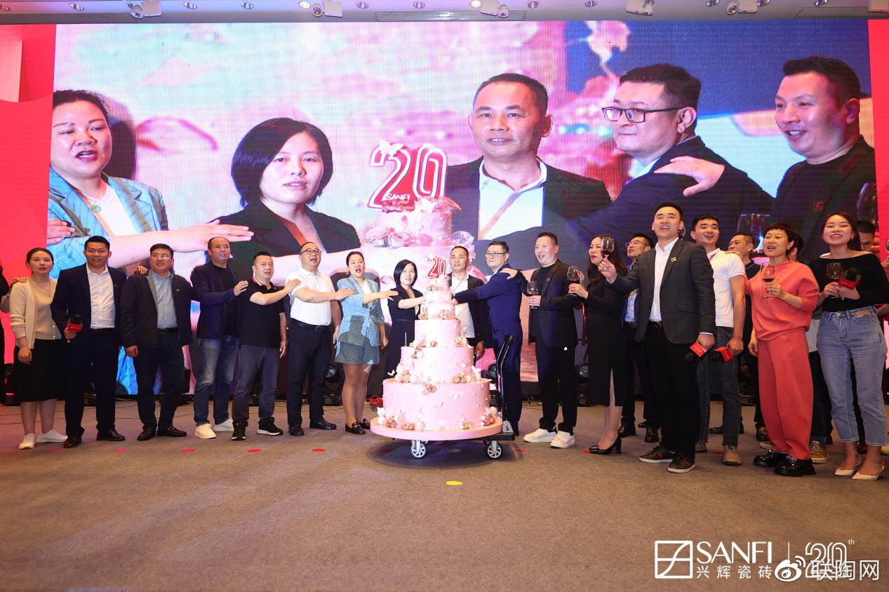 在兴辉集团总经理张英女士致兴辉家人的一封家书后,兴辉经销商代表伴着《光辉岁月》的旋律将兴辉瓷砖20周年生日蛋糕缓缓推向舞台中间,共同唱响对兴辉20岁的美好祝愿。新锦成集团董事长何成健先生为兴辉20岁生日送上祝福和寄语,表示将与全国兴辉青年一起携手,在轻奢4.0时代共创美好未来。