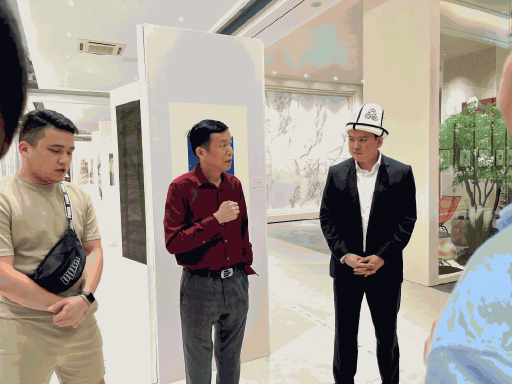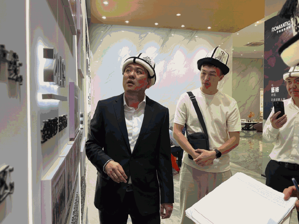 秉持“全球同步、品质同行”的理念,以特色瓷砖打造创新艺术空间,持续向全球呈现无尽的品牌力量。4月20日下午,吉尔吉斯斯坦商务团莅临罗曼缔克瓷砖佛山营销总部展厅参观考察,企业董事长刘胜红及相关部门高层领导进行了热情接待,并全程陪同参观罗曼缔克瓷砖展厅全景,双方相聚畅谈,共谋发展,共话未来。