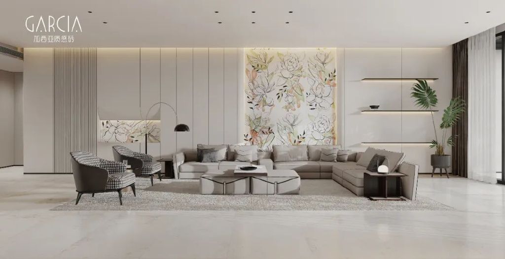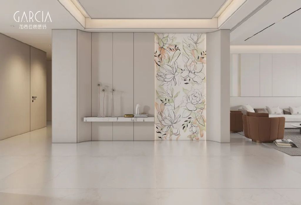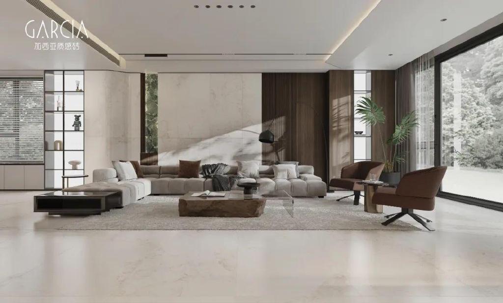 系列采用超分子肌肤釉料,使得砖面更细腻温润;呈现26°亲和柔光,舒适护瞳,可让家居空间氛围更显柔和质感;系列目前涵盖900x1800mm、750x1500mm、600x1200mm三种流行规格,满足多种应用设计及施工需求。