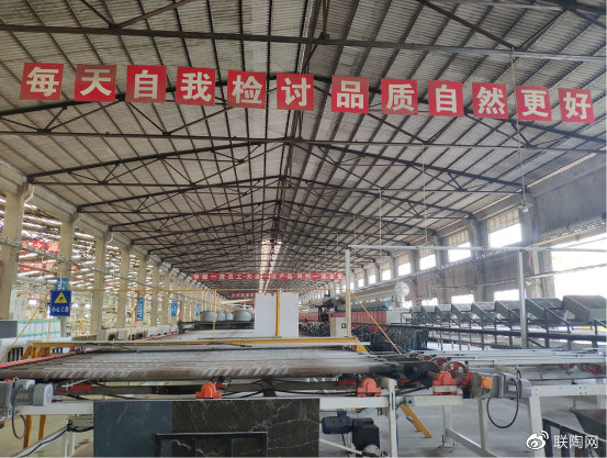 在惠达瓷砖事业部总经理严仕杰的带领下,媒体探访团成员走进位于民安陶瓷工业园惠达新高盛生产基地,据严仕杰和基地相关负责人介绍,惠达薄板|岩板基地占地总面积360亩,总投资约8.5亿元。2009年建成第一条线并实现投产;2012年第二条线点火投产;2022年5月,岩板级制造瓷砖线投产。年产能达600万㎡,日产约2万㎡,是目前中国乃至世界单线及日产量较大的陶瓷薄板示范基地之一。基地拥有智能高效的宽体窑炉,多工艺实施能力的先进釉线,12通道喷墨印花机,满足各种不同规格的大吨位压机。此外,早在2016年,惠达瓷砖生产基地就获得了省级科学技术进步奖二等奖,并在2020年被评为“高新技术企业”,同时拥有多项实用新型专利证书。