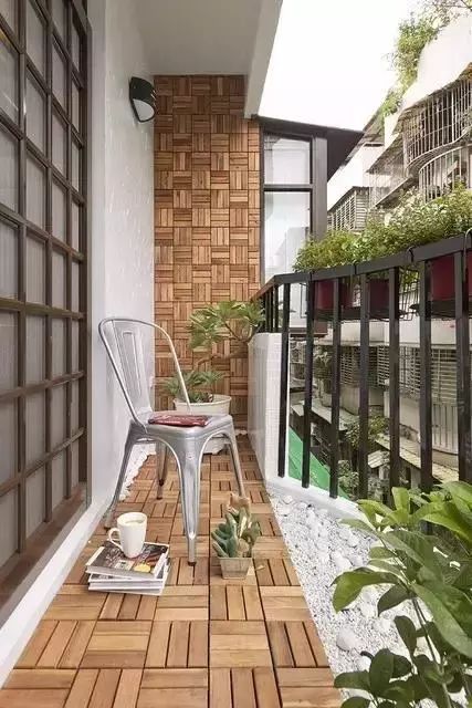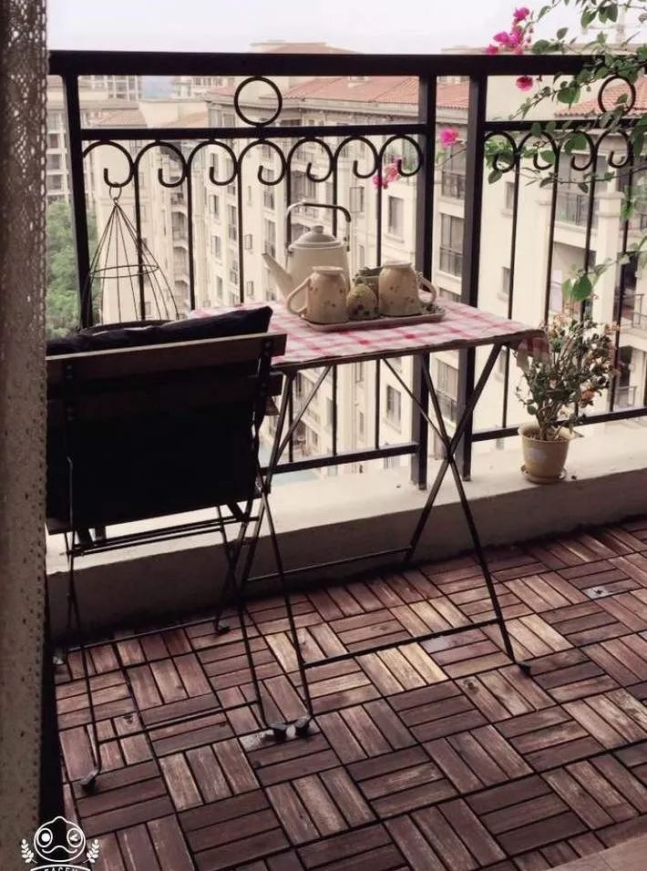 现在很多人的阳台会选择铺瓷砖,其实瓷砖都给人过于冰冷的感觉,少了一份舒适惬意。其实现在还有另外一种选择,给阳台也铺上防腐木地板。试想一下,坐在木地板打造的阳台空间,晒着暖阳,伴着绿色盆栽,喝杯咖啡或读会儿小书,感受美好时光!