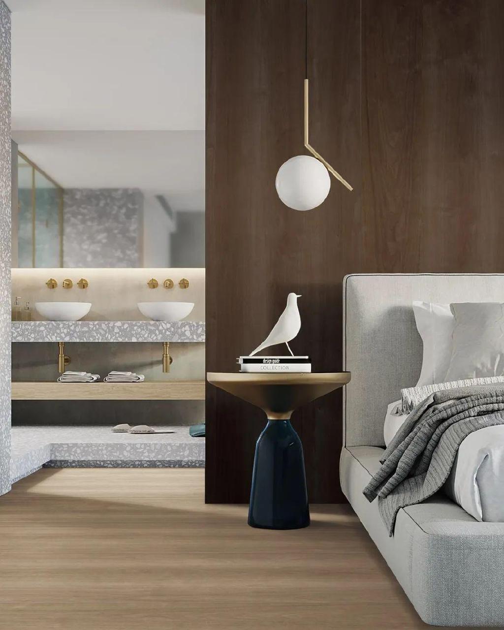 朴素的木纹瓷砖带着树木的肌理,