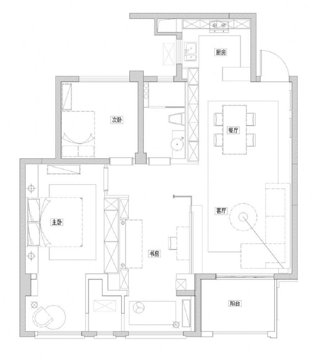 玻璃隔断,多一个书房。更满足现在都市生活家庭的需求。
