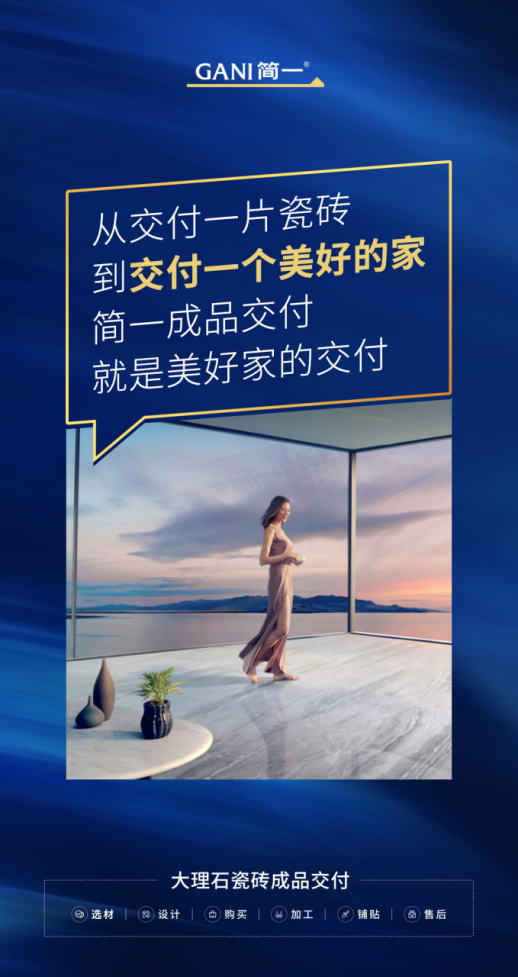 基于对瓷砖本质以及客户需求的深刻思考与洞察,简一成品交付诞生了。这种为顾客提供从选材、设计、购买、加工、铺贴到售后的瓷砖整体解决方案的全流程闭环服务,致力于把复杂和麻烦留给自己,把简单和美好带给客户,不仅完善了消费者的装修体验,让瓷砖半成品交付升级为美好家成品交付,还加速了行业变革,带动了瓷砖交付标准的升级。