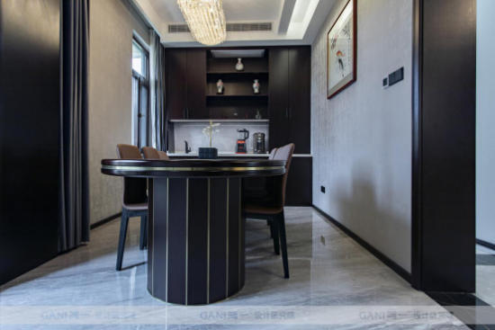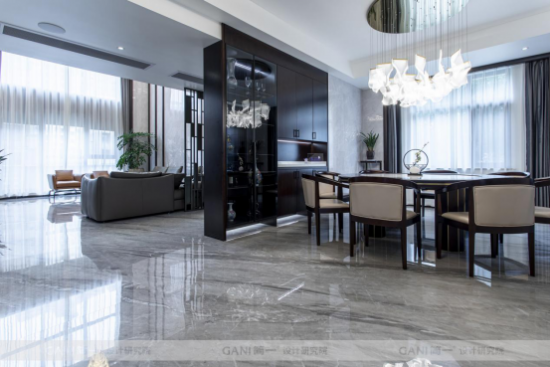 以图示装修为例,色彩择取经典“黑、白、灰”,暖色灯光中和室内色温,咖色软装低调过渡,映衬的家装更加柔和自然。地面通铺简一的大理石瓷砖,0.5mm密缝连纹增强空间整体感,让视觉观感更加宽敞明亮。柔抛釉面+细腻纹理,无斑点、无瑕疵,真实还原天然石材的灵动质感和肌理细节,为品质家居增光添彩。