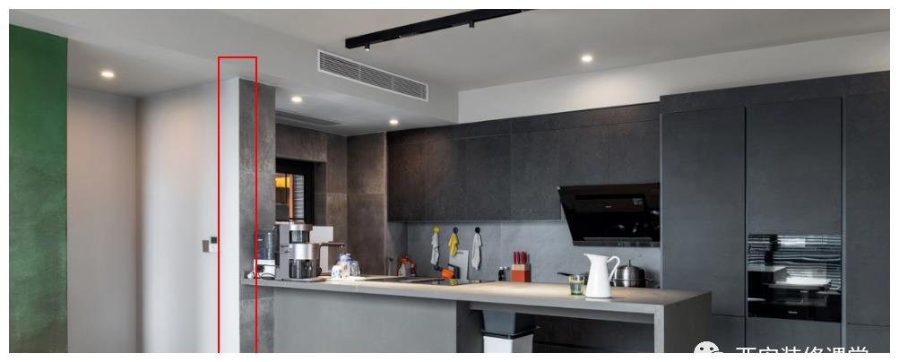 ▲无法采用定制收纳柜收口的空间,采用定制黑色的钛金条,进行收口,而且可以兼顾装饰效果,也是不错的做法