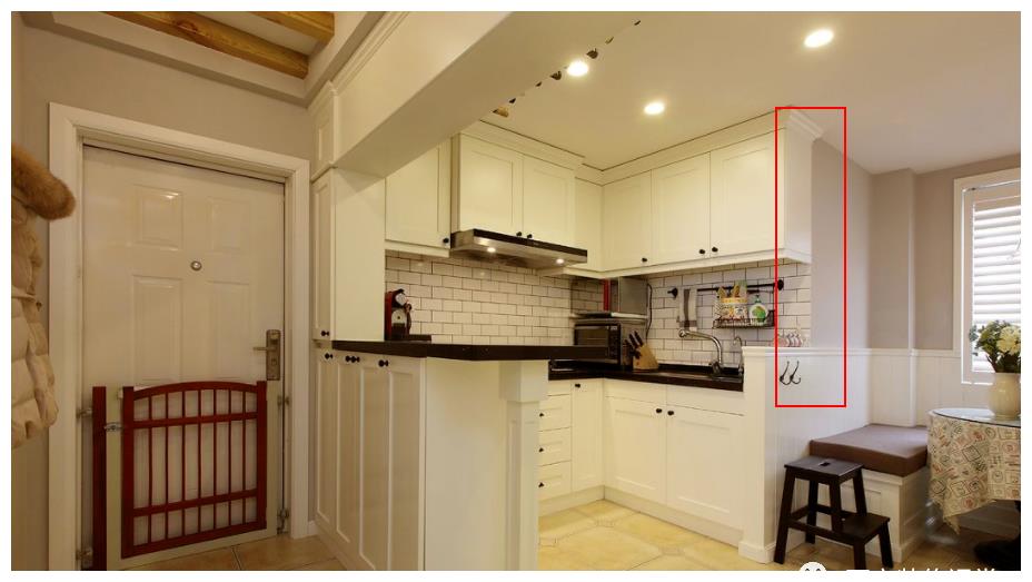 ▲只是不装门,垭口照样做,这样的属于半开放式厨房,铺砖正常进行,不存在收口问题,和封闭厨房铺法一样。