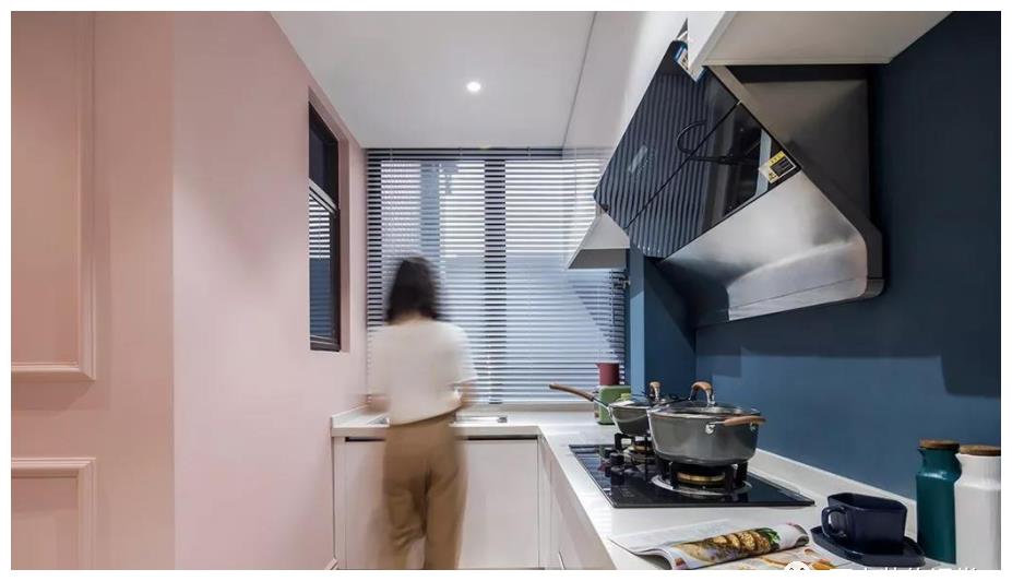 ▲灶具背景珐琅板装饰,其他区域采用防水漆直接处理,没有了瓷砖的收口问题,同时防水漆满足平时的打理