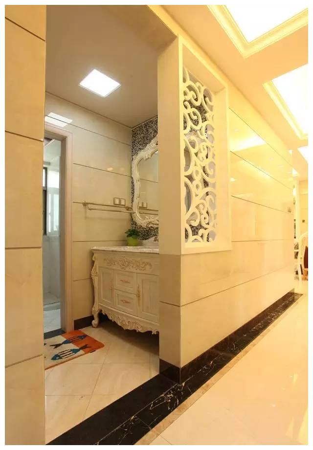 国道这个位置做了洗手台,隔断很不错,洗手台也是宫廷风,很华丽的。最重要是干湿彻底分离啊。