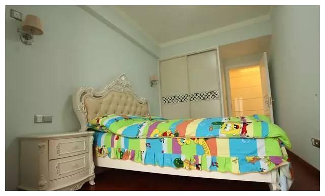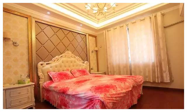 卧室和客厅用了差不多的背景墙,这个乍一看把,有点夜总会包间的意思,就是太过华丽了。还好关上灯背景墙不会反光= =。