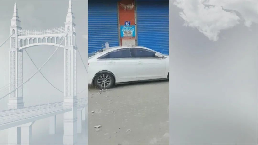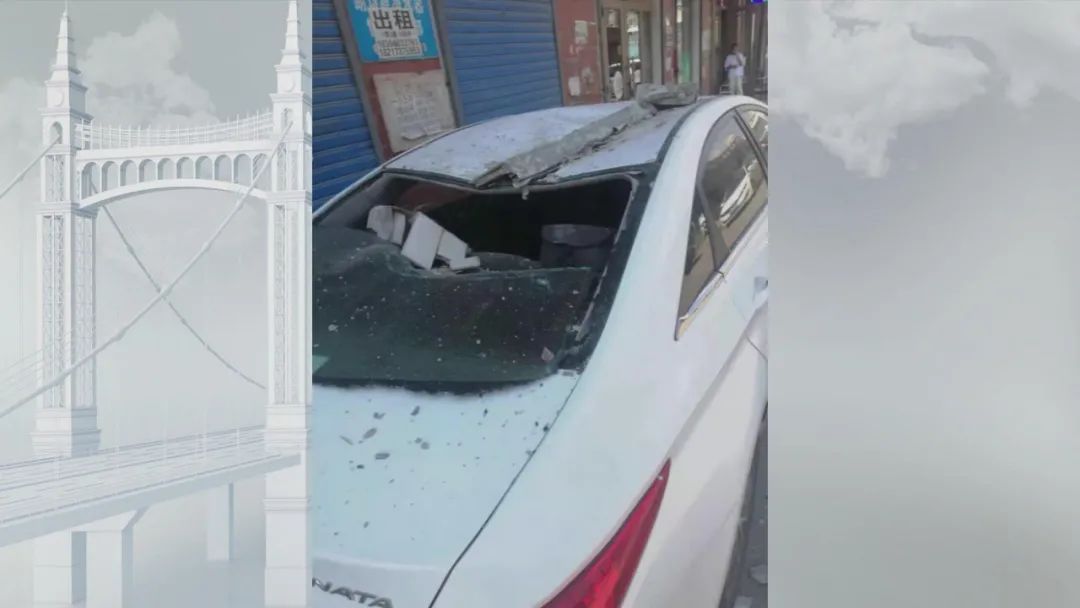宾县居民 赵军(化名):6月8号下午的时候,我临时停在这里然后我去办点事。马上四楼的位置,上面整体的墙体水泥连着墙砖,全都掉下来了,把我整个上车身都砸坏了。后面的车也被砸坏了,这种水泥特别沉,如果砸到人一定就砸死了。