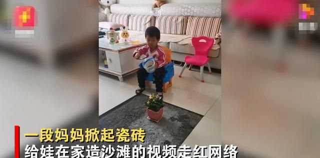 视频中,客厅中的瓷砖少了一块,宝妈也要给里面倒了一些沙子进去,女儿就坐在一旁玩得不亦乐乎。宝妈称,这个做法是我想出来的,瓷砖设计成了能活动的样式,只要是女儿想要玩沙子就打开,不想玩了以后就拿着瓷砖盖上,这样给女儿一个地方玩耍了,又不会影响到家里人通行。