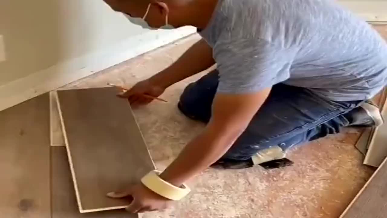 小伙的年龄不算大,但是這贴瓷砖的手法,却比老师傅都厉害!