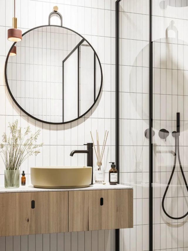 如果空间想打造得艺术感一些,可以选择部分墙面来铺贴,既可以摆脱既往的沉闷,还能很有趣,做个有趣的人,连铺砖都不放过。