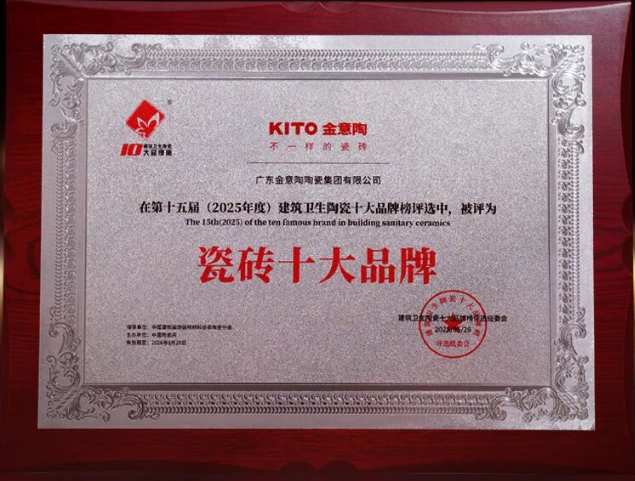 由佛山市委网络安全和信息化委员会办公室、佛山市市场监督管理局指导、佛山陶瓷品牌强市战略峰会年度活动组委会主办的“品牌破圈 聚力突围——2025佛山陶瓷品牌强市战略峰会”在佛山禅城举行。会上,2025年度佛山陶瓷行业品牌推介榜单正式揭晓。金意陶凭借卓越的创新能力、对品质服务的坚守和强大的品牌影响力,揽获“佛山陶瓷头部品牌、陶瓷十大品牌”等重磅大奖;由中国陶瓷网主办的“超级品牌,中国主场”首届泛家居行业品牌节,在佛山举行。2025建筑卫生陶瓷十大品牌榜单正式揭晓,金意陶凭借硬核的品牌实力、优异的产品品质和良好的市场口碑一举揽获“瓷砖十大品牌”重磅殊荣!金意陶此次荣获“瓷砖十大品牌”,是业内权威以及消费者对金意陶的高度认可,更是金意陶品牌实力与影响力的权威认证。