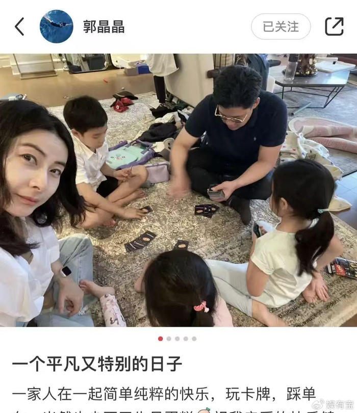 郭晶晶和霍启刚的日常生活,远非外界想象的奢华样板间。此前郭晶晶为霍启刚庆祝生日时,曾分享过客厅的画面。地上散落着孩子们的玩具和衣物,一家人就随意地坐在地毯上玩纸牌游戏。这种放松、真实的家庭氛围,与他们厨房瓷砖上的渍迹如出一辙。郭晶晶曾多次表达过她的生活理念:“只要一家人在一起,简单纯粹的快乐就好了。”