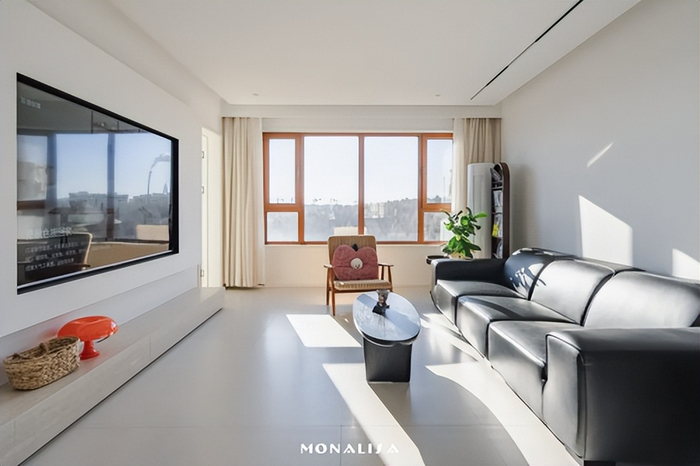 在北京,曹小郑和君怡把十多年北漂岁月的沉淀,化作现代极简风的设计灵感。他们渴望极简、宽敞、留白的空间,于是把客餐厅彻底打通,形成纵向15米、横向4.4米的开阔竖厅,没有隔断、茶几等阻碍,为家人的情感互动创造空间。