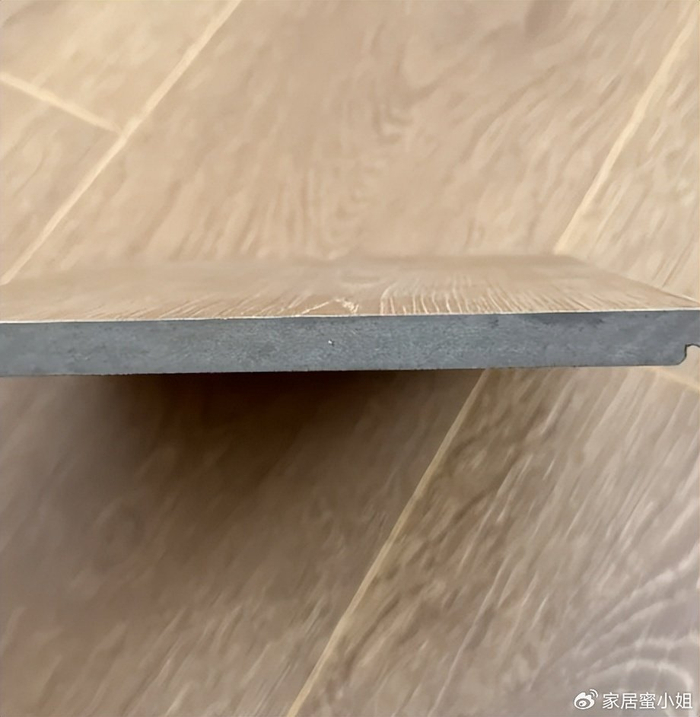 强化地板跟瓷砖完全不一样,它的脚感很舒服,光脚站在上面舒服、柔软,