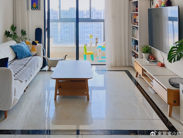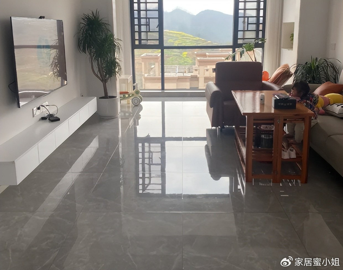 当初想着家里铺瓷砖,即便沾染上污垢清洗也轻松,直接用拖把一擦就干净了,